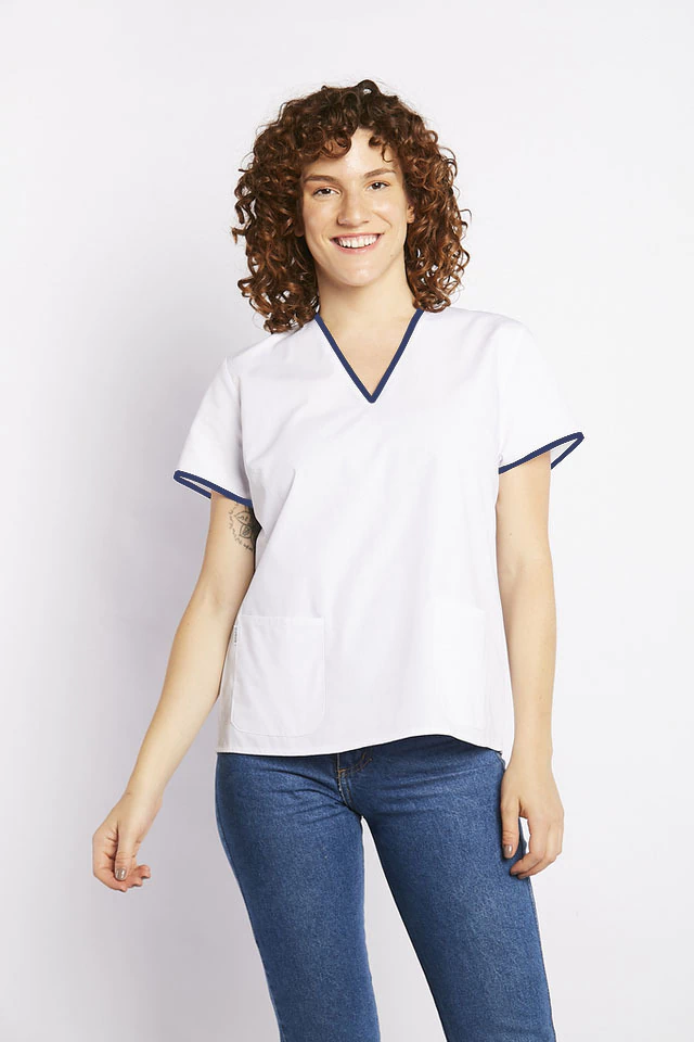 La casaca Sevilla es una prenda imprescindible para quienes buscan estilo y funcionalidad. Esta casaca combinada con azul marino mantiene su corte clásico con tiritas de ajuste en la parte de atrás, garantizando libertad en el movimiento para su uso diario. Fabricaba en tela Lavi Listo (Poliéster 65%, Algodón 35%), lo cual la hace resistente y de fácil cuidados. Incluye dos bolsillos inferiores y un bolsillo en el pecho para mantener tus objetos esenciales siempre a mano. Trae un cuello combinado en azul marino, haciendo juego con las mangas y las tiritas traseras.
