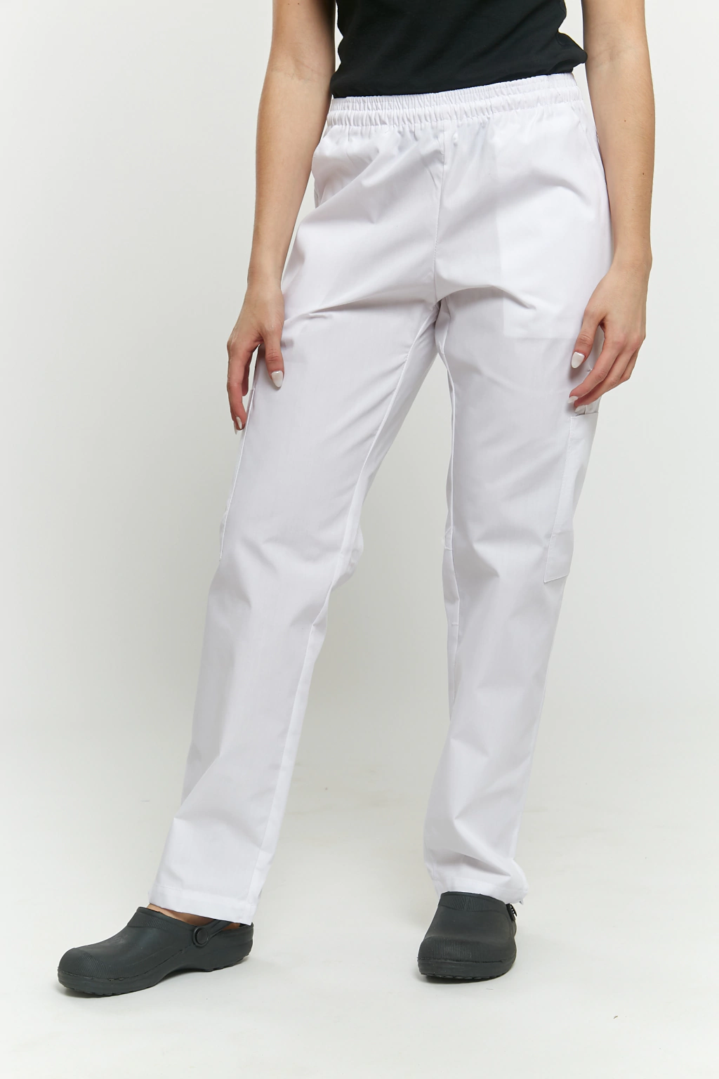 Pantalón cargo celeste para mujer, ideal para un look relajado. Con cintura elastizada y cordón de ajuste. Cuenta con dos bolsillos delanteros, cuatro bolsillos cargo de distintos tamaños y un bolsillo trasero plaqué. Tiene abertura lateral en la botamanga y está confeccionado en tela Lavi Listo.