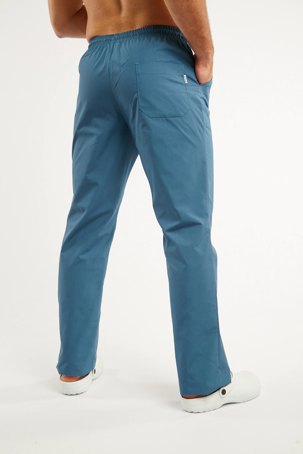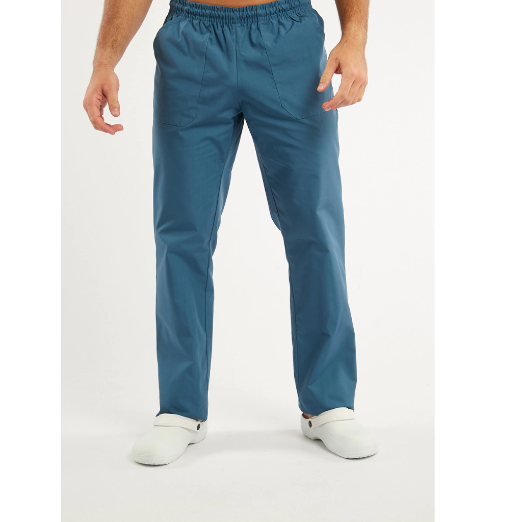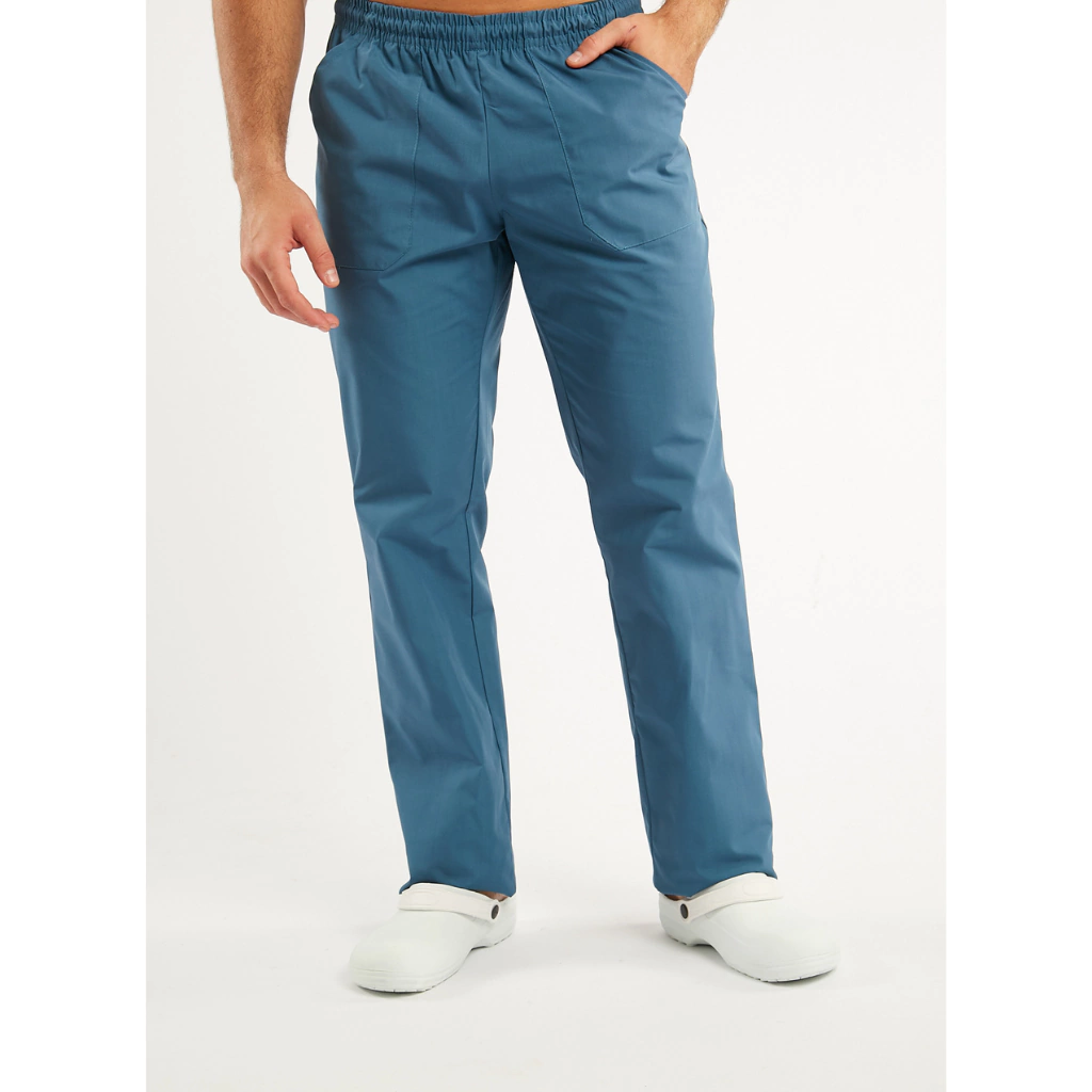 Pantalón estilo náutico recto, con cintura elastizada. Tiene un total de tres bolsillos, dos delanteros y uno trasero. La tela es Lavi Listo (Poliéster 65%, Algodón 35%).